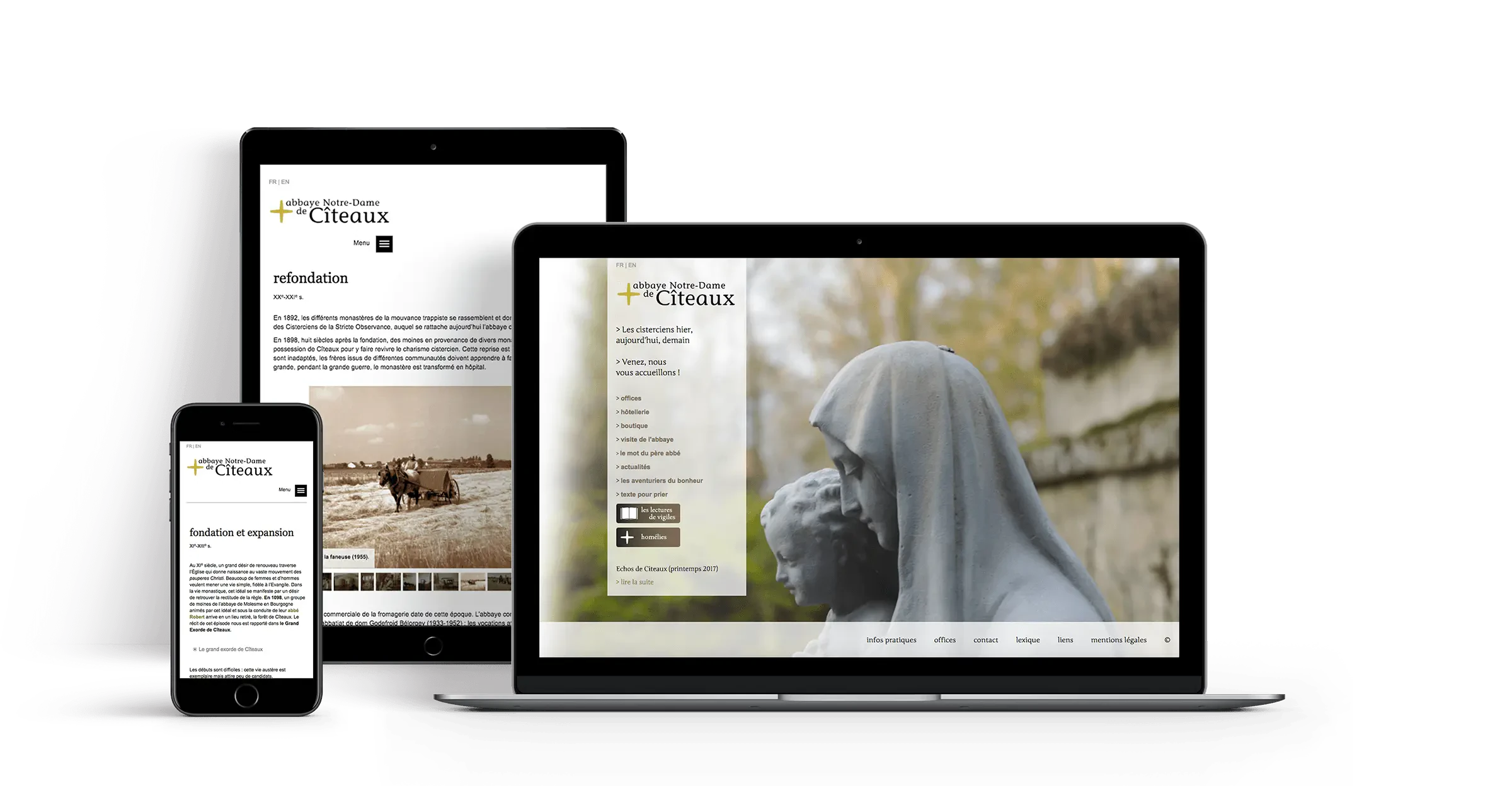 Malgré des délais très serrés et un impératif budgétaire, 148 a pu fournir rapidement un site administrable et efficace aux moines cisterciens. Le site permet aujourd'hui de découvrir l'abbaye de Cîteaux avant une prochaine visite.