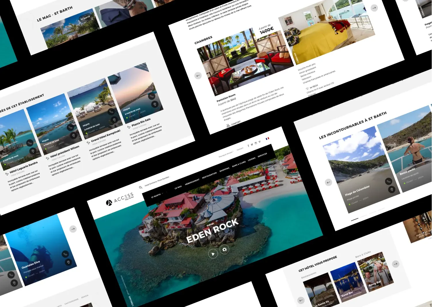 Le site d’Access doit refléter l’image de marque des hôtels et restaurants qui sont proposés. Leur positionnement luxe. Il nous faut imaginer un site immersif, qui donne envie de partir dans ces lieux de rêve. L’univers du luxe est un univers exigeant. Le site doit d’abord être beau, mais cela ne suffit pas. L’impression premium qui se dégage provient d’un ensemble d’éléments tous aussi importants les uns que les autres : le design, l’expérience de navigation, la qualité des contenus, la fluidité des chargements, les animations en douceur. Gaetan, notre directeur de création, travaille pour combiner tous ces paramètres.