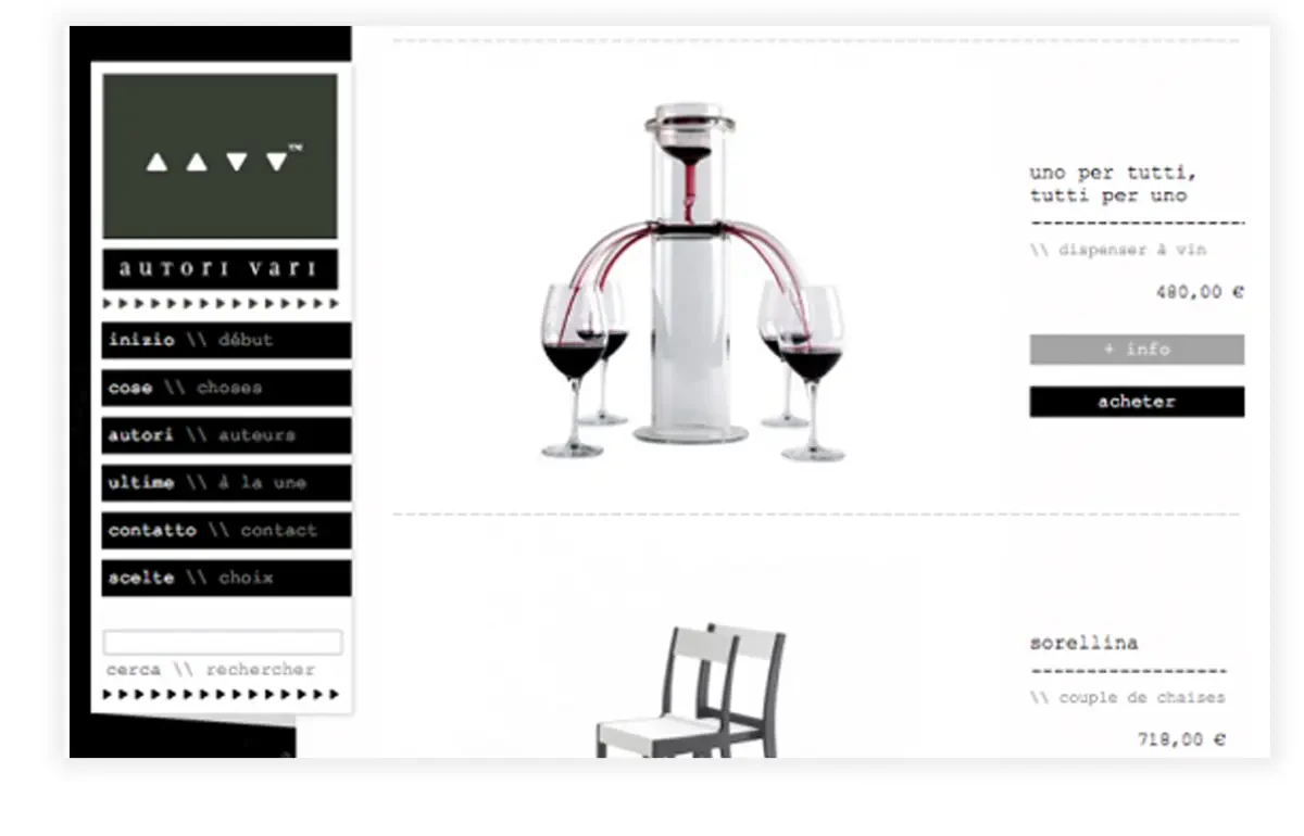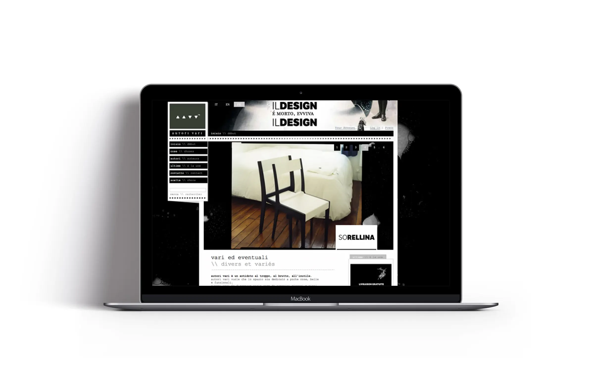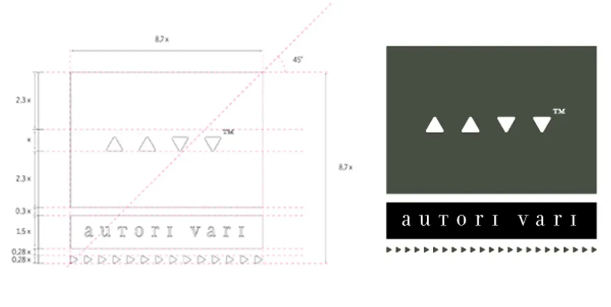 « Le logo est une représentation graphique de la façon universelle d'écrire Autori Vari -aavv-. L’idée générale était de reproduire graphiquement le mélange entre le monde du rationalisme fonctionnaliste italien des années 50 et la tradition de la production artisanale : une conception moderne avec une réalisation manuelle. »