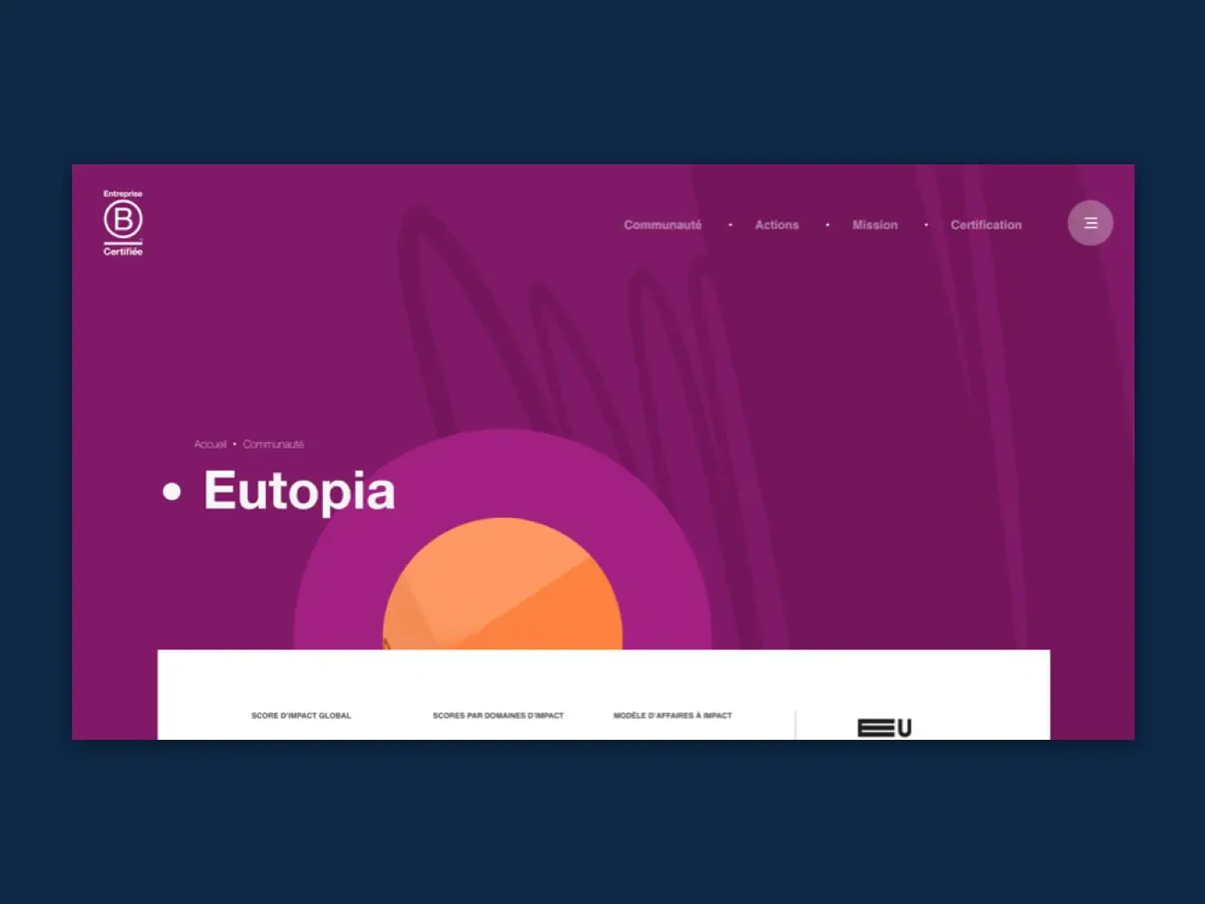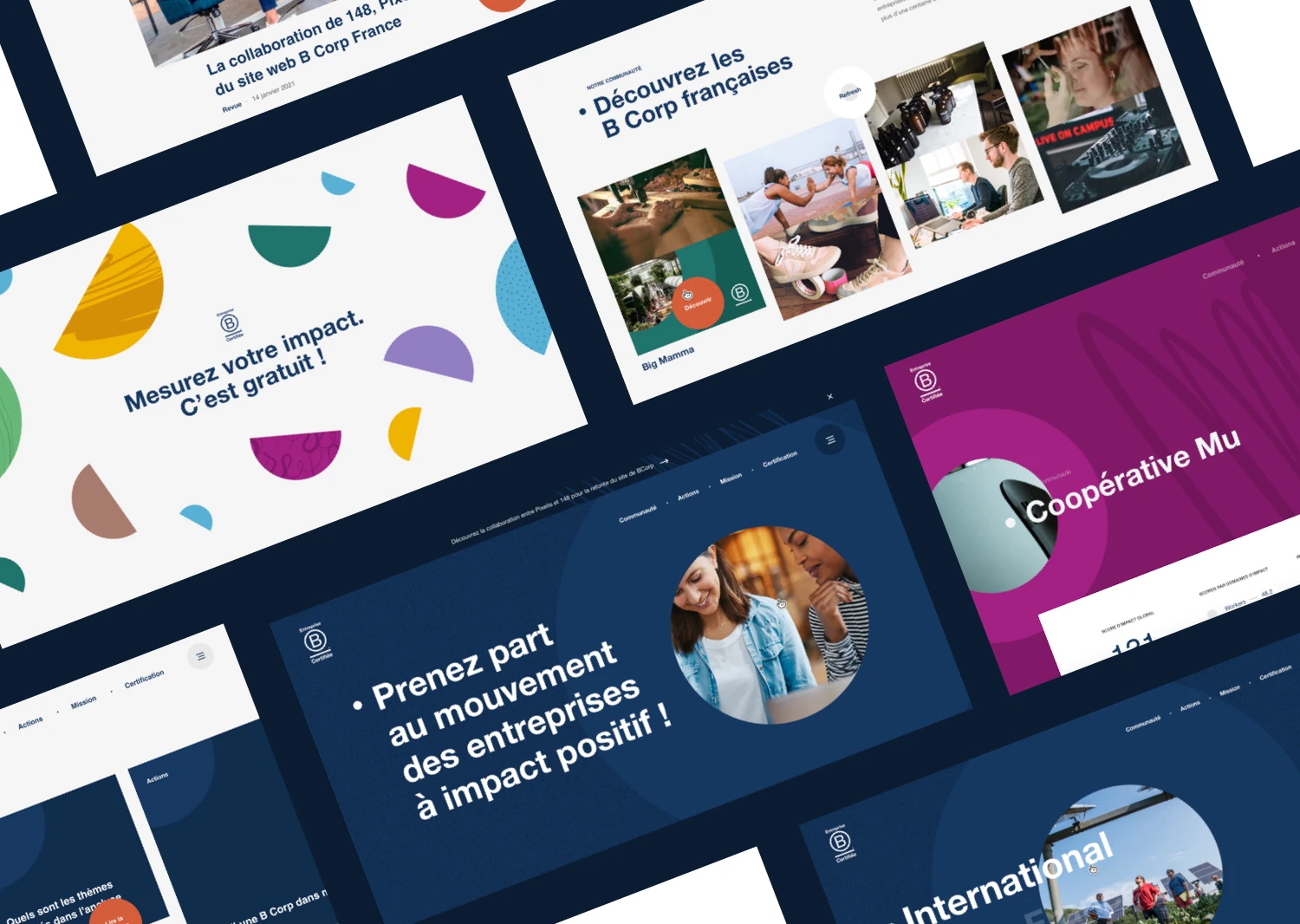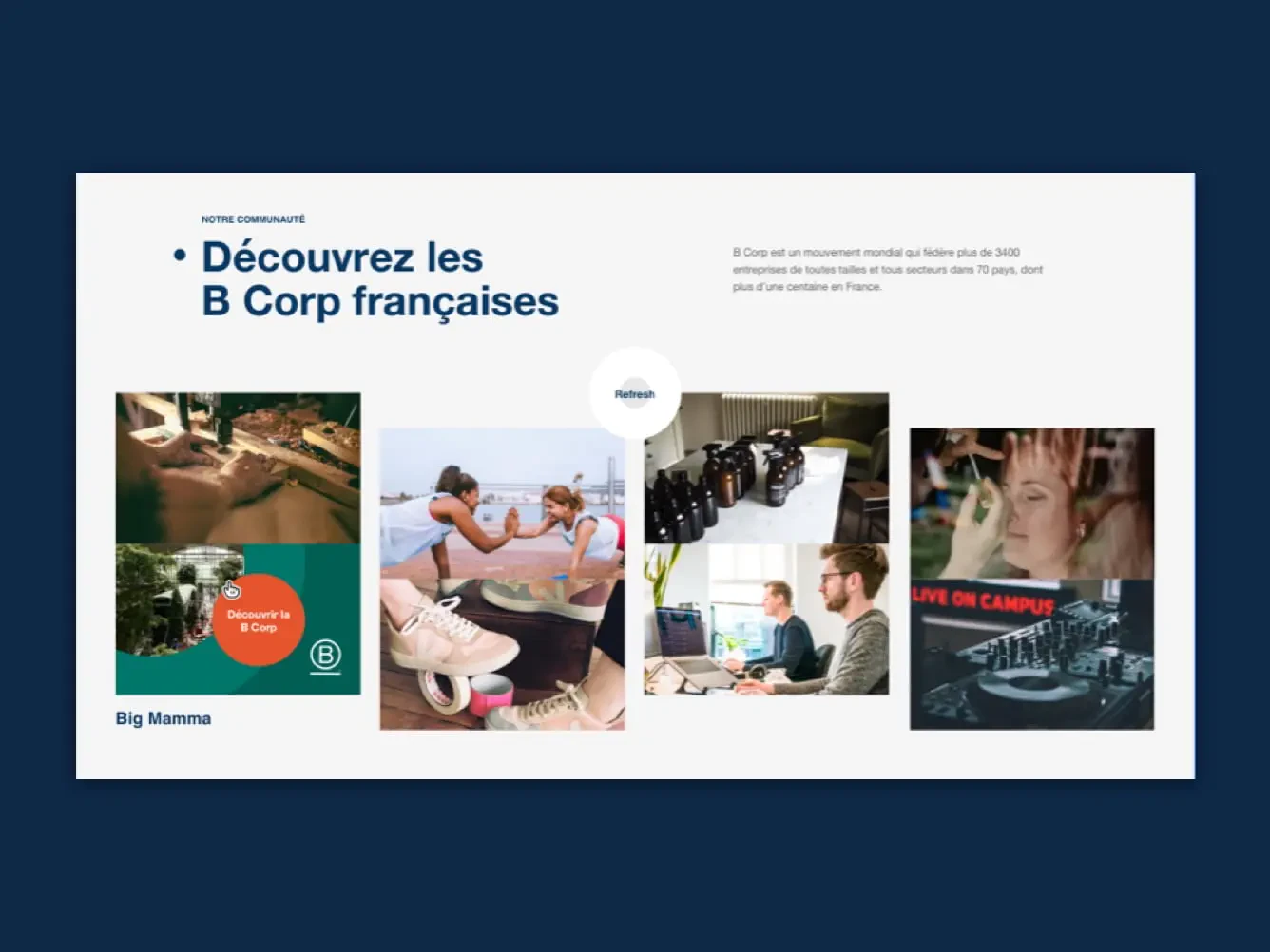 Le design du site est pensé comme le reflet de la philosophie des entreprises B Corp : des partenaires, unis par des valeurs communes, qui travaillent ensemble pour être plus fortes.