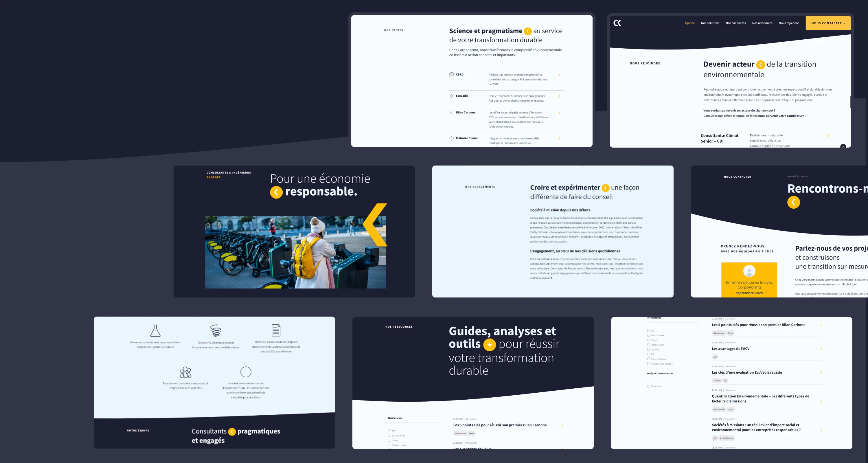 Сorpokarma est une équipe de consultants et ingénieurs engagés qui accompagne les entreprises dans leur transformation durable et leur engagement environnemental sous la casquette hybride de cabinet de conseil & bureau d’études. Le double challenge pour 148 : concevoir un site web à la fois esthétiquement moderne et conforme aux principes d'éco-conception, tout en répondant aux attentes de conversion et de clarté d’information pour différents types d’utilisateurs.