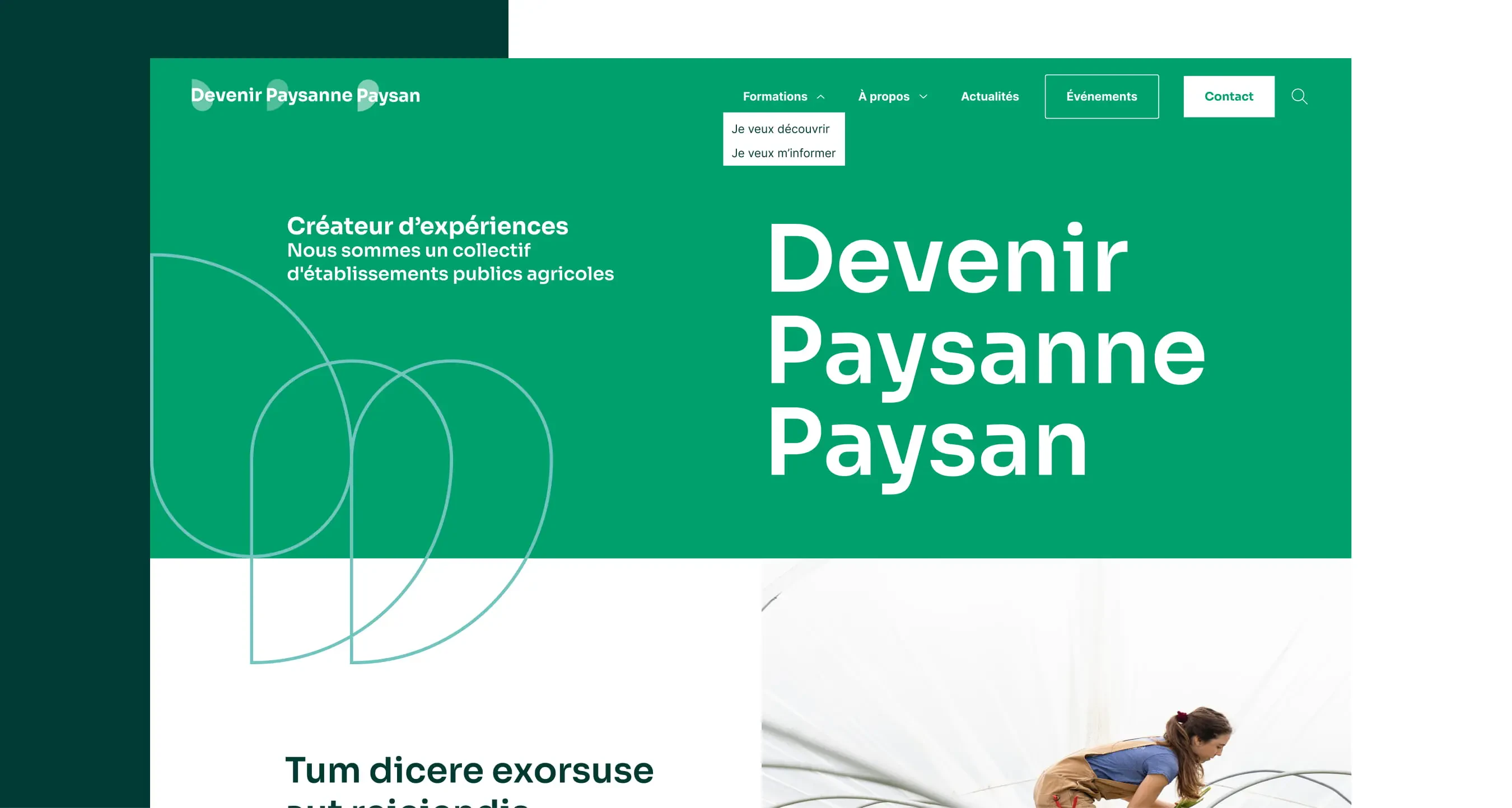 Soucieux de soutenir le mouvement de retour aux métiers de la terre et du vivant, le collectif Devenir Paysanne Paysan a souhaité fédérer les centres publics qui forment nos futurs paysannes et paysans et leur apporter une visibilité. Il a fait appel à 148 Agence Collective pour créer une plateforme de communication.