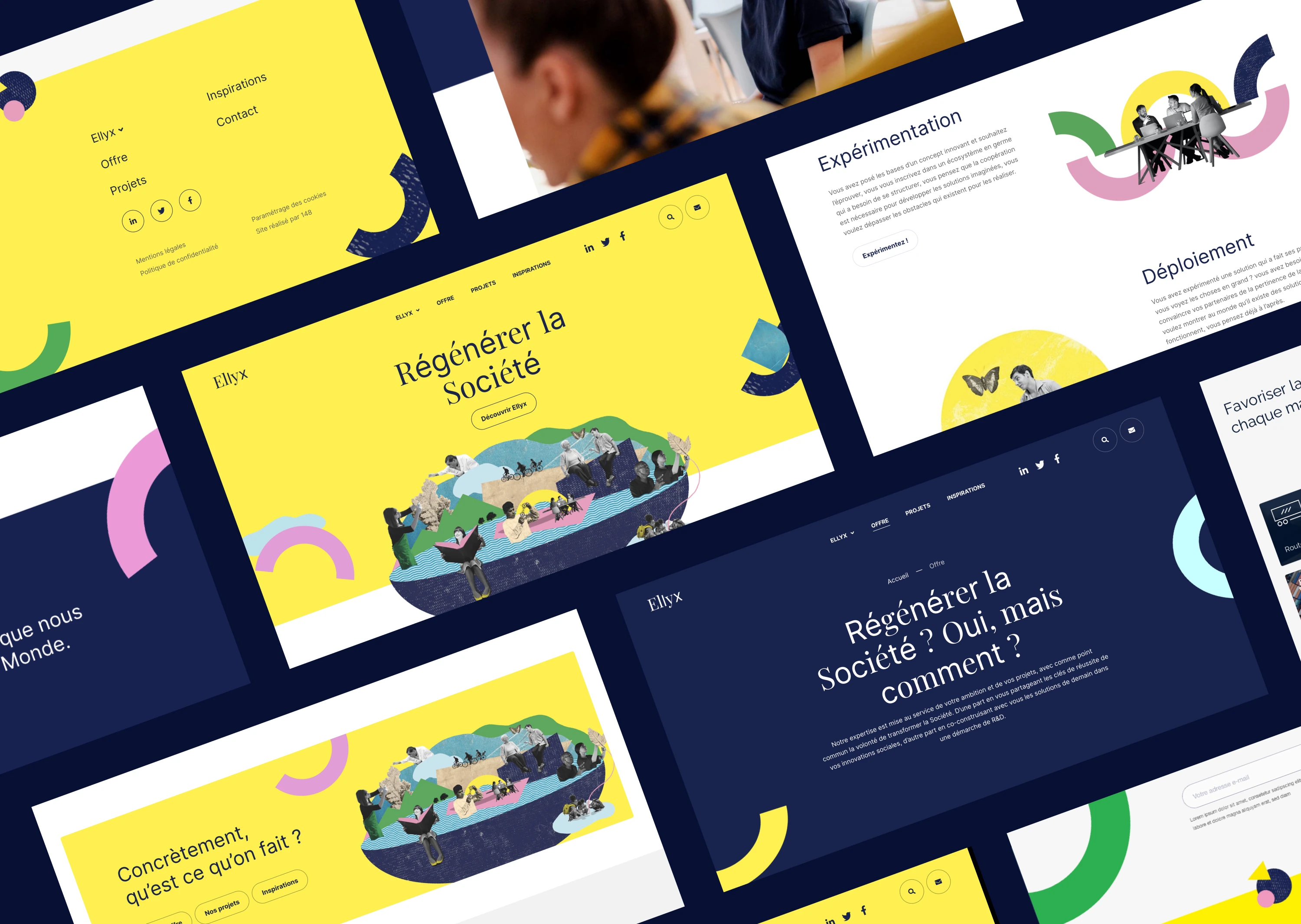 Pour matérialiser le positionnement co-créé avec Ellyx, un principe visuel nous inspire immédiatement : l’assemblage. Fondée sur la différence et la capacité à formuler des nouvelles solutions, cette technique graphique nous semble en outre parfaitement représentative de l’optimisme et de l’authenticité qui animent Ellyx.