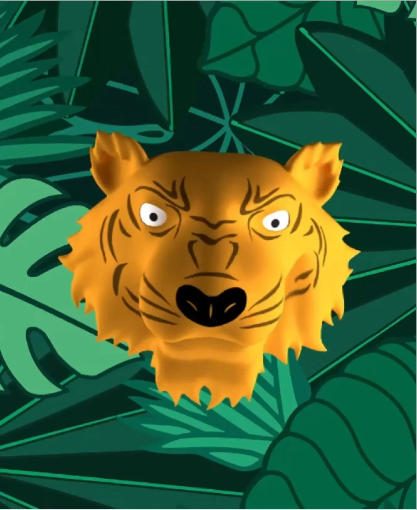 La conception a lieu chez Pierre Pierre, notre studio partenaire spécialisé en animation, avec lequel on a déjà eu l’occasion de travailler sur le projet de campagne 360° Orthospé. Sont conçues des représentations graphiques des quatre animaux phares de la marque Kenzo Kids : le tigre, la panthère, le lion et l’éléphant. Ces “animojis” sont prévus pour interagir directement avec les enfants en magasin, en réagissant aux expressions faciales de ces derniers. Lorsqu’on ouvre la bouche, le lion en fait de même. L’éléphant, lui, soulève sa trompe. Et, quand il ne se passe rien… le personnage s’endort !