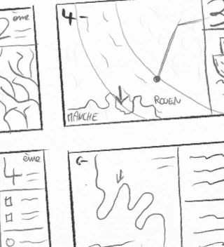 Une fois les séquences d’images exportées, elle a tout fait pour simplifier au maximum la compréhension sur After Effects : un curseur qui représente le déchet avance dans le fleuve et s’échoue à 7 reprises sur des berges. Chaque fois, une fenêtre permet de donner plus d’informations sur cet échouage.