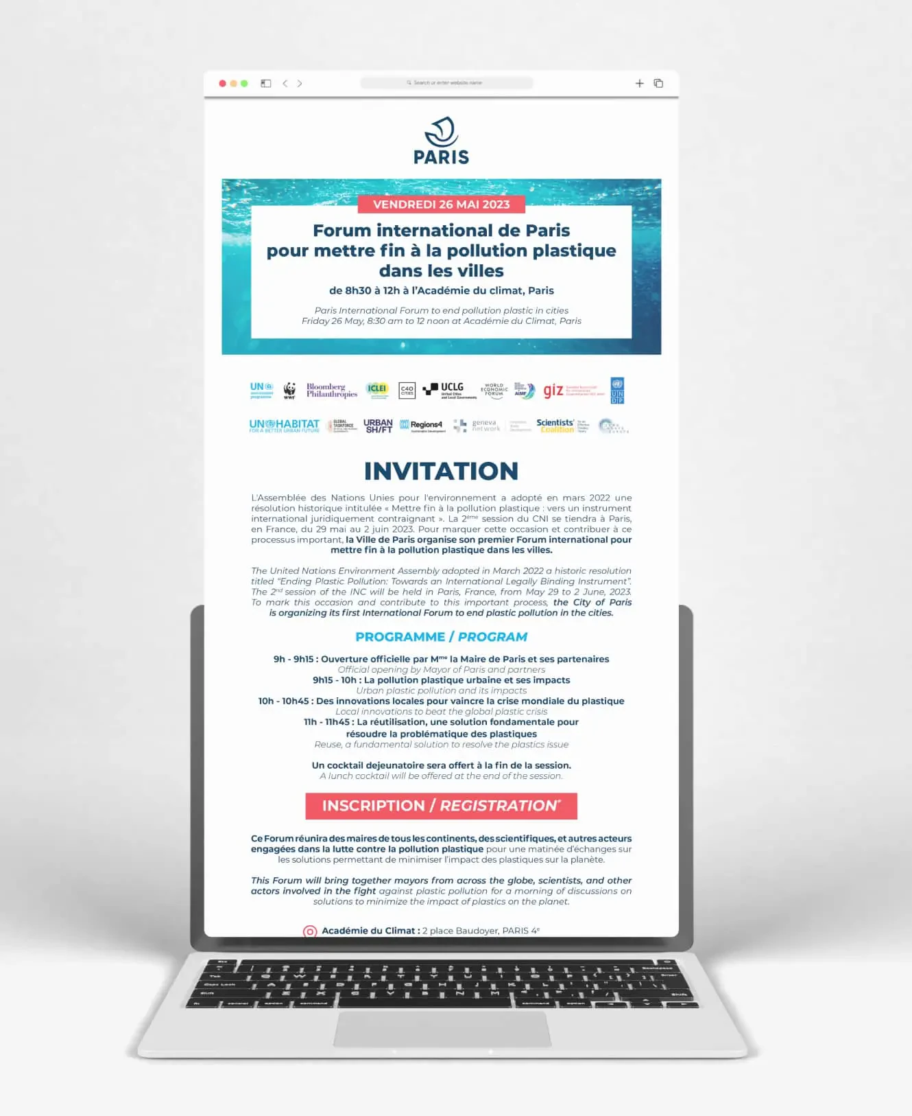 Pour marquer cette occasion et contribuer à ce processus important, la Ville de Paris organise son premier Forum international pour mettre fin à la pollution plastique dans les villes qui s'est tenu le 26 mai 2023 à l’Académie du Climat à Paris.