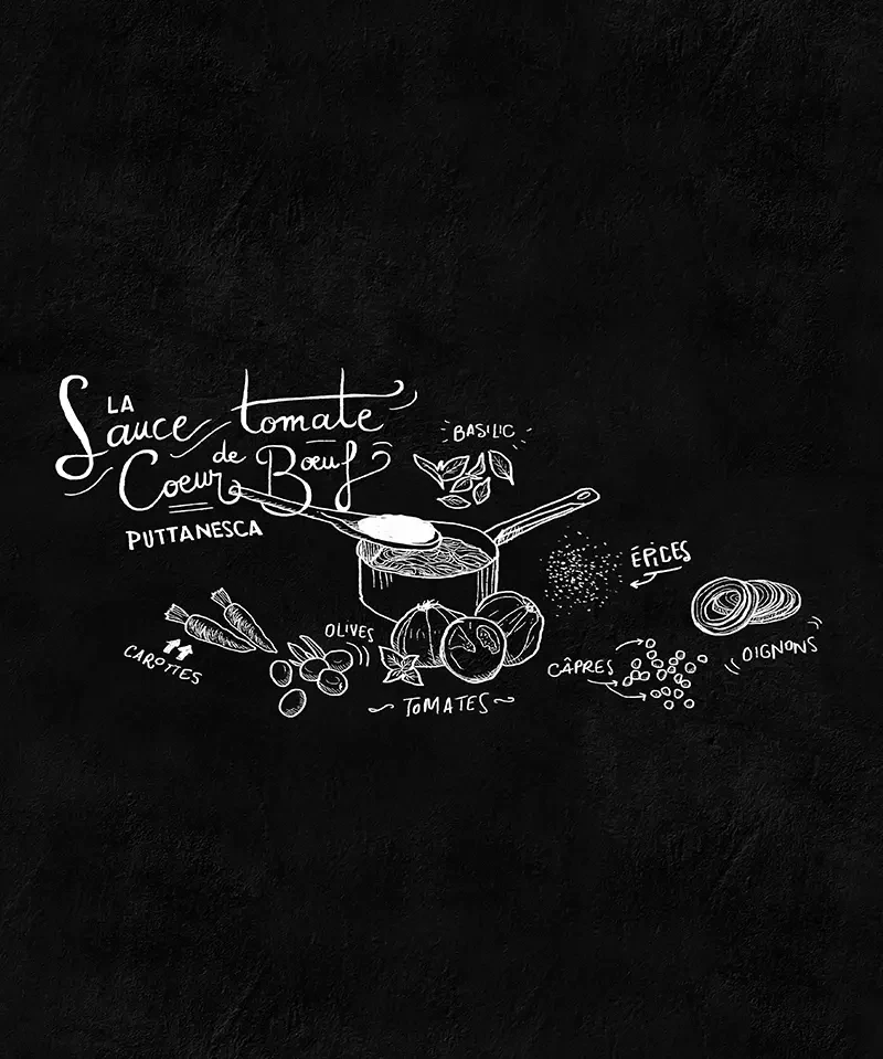 Afin d’animer le stand une cheffe de cuisine est spécialement mise à disposition pour composer de nombreuses préparations à base de produits ProSain. Ces recettes sont dessinées à la main par une illustratrice et placées sur un fond en ardoise afin de donner l’illusion qu’elles sont esquissées à la craie.