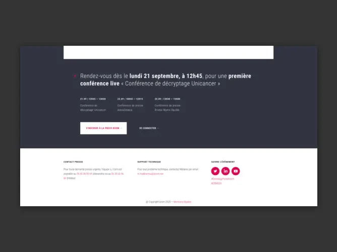 Nous sommes en mars 2020, le monde entier est en train de se confiner et un de nos clients nous appelle. C’est l’agence de relations publiques LJCom. Dans quelques semaines, doit se tenir à Chicago l’ASCO, acronyme d’American Society of Clinical Oncology, le grand congrès annuel sur l’oncologie qui réunit 40 000 médecins de tous les continents pour faire le point sur les avancées cliniques. La décision est prise : ce congrès se tiendra grâce aux outils de travail en distanciel. Et l’expertise de l’agence 148 est mobilisée. LJCom nous demande de créer une plateforme digitale de remplacement à destination de la presse française pour cet événement international. Un espace sur lequel les experts du congrès puissent prendre la parole en live et livrer leurs comptes rendus auprès des journalistes. Cette Press Room doit aussi donner accès à une médiathèque, des vidéos en replay, un agenda et un outil de demande d’interview.