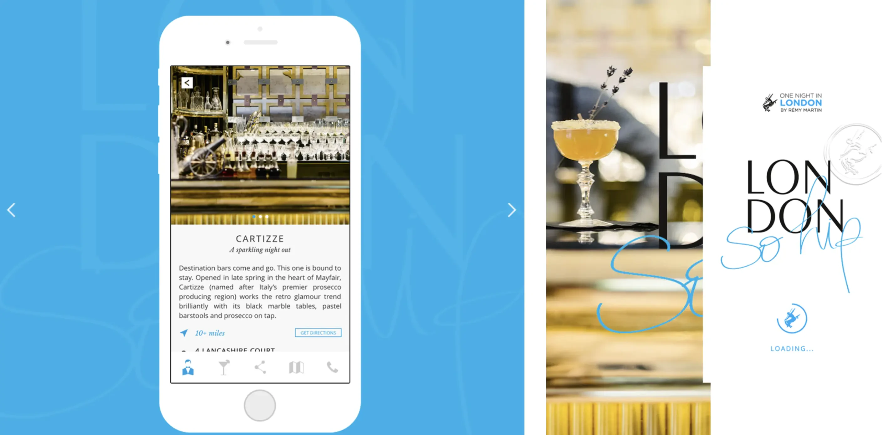 Tout à la fois instrument de navigation et accessoire hype, cette création, dont la première version pour iPad et iPhone avait déjà atteint les 3 000 téléchargements, parvient à contextualiser le produit dans un environnement noctambule sophistiqué. Scénarisé de la sorte, le cognac Rémy Martin est désormais perçu comme l’ingrédient indispensable de soirées cultes, à déguster (avec modération) dans l’ambiance feutrée ou baroque de lieux d’exception.