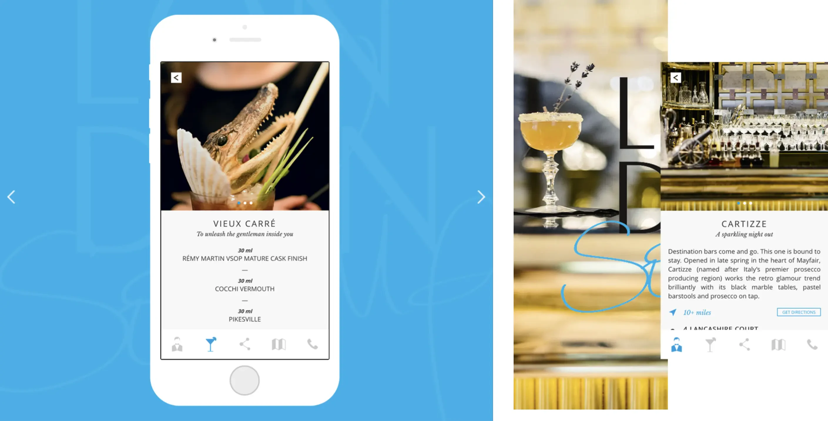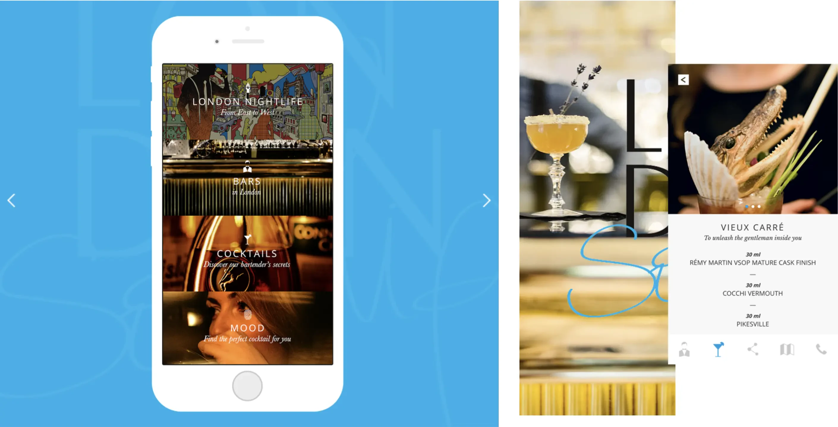 Du design raffiné au confort de l’ergonomie, en passant par les contenus enrichis (12 bars contre 6 dans la précédente application « One Night in London » créée en 2013), tout a été mis en œuvre pour offrir une expérience utilisateur glamour, en adéquation avec les valeurs de la marque, symbole du chic à la française.