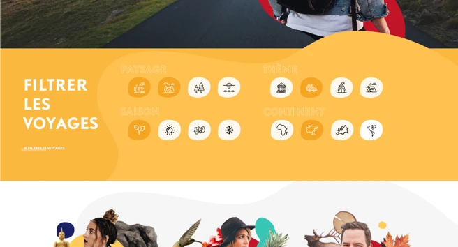 Au-delà de mettre en avant des ambassadeurs, la philosophie de Liberté Voyages est d’accompagner chacun de ses clients pour satisfaire ses envies, se laisser guider par ses émotions pour choisir sa destination, son aventure. C’est ainsi que nous avons mis en place un système de filtres par type de paysage, par continent, par saison ou encore par ambiance (camping, découvertes des patrimoines, road-trip, etc.). De cette manière, le voyage, une fois de plus, n’est pas envisagé comme une simple destination, un endroit « où il faut aller » mais comme une réponse à des envies en accord avec les émotions du voyageur.