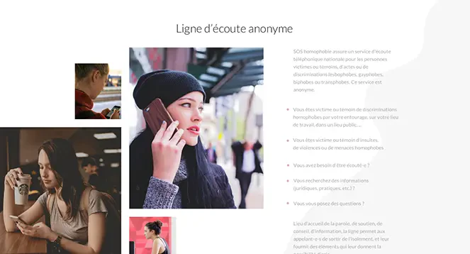 Dans la continuité de la nouvelle identité, un site ayant une vocation plus éducative, préventive, didactique est mis en place. Ce site est travaillé comme un portail, avec une vraie ligne éditoriale. Un contenu informatif est ainsi créé, les témoignages sont mis en avant, le contenu est humanisé, tout comme la lutte et l’association, par extension. Il faut montrer à l’internaute qu’il n’est pas seul. L’assistance aux victimes est mise en avant et personalisée, la dimension sociale du mouvement est poussée par les témoignages et les réseaux sociaux.