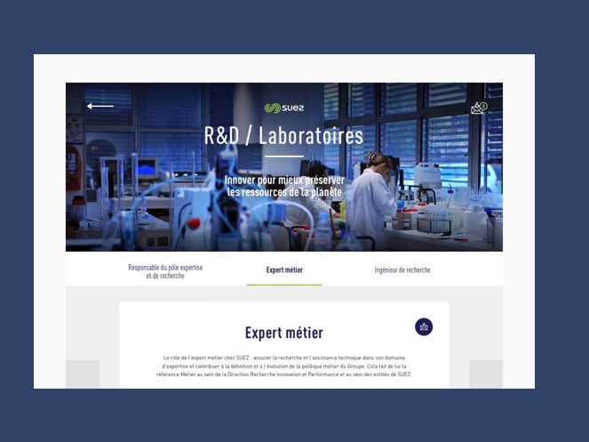 Suez souhaite revoir la manière de communiquer autour de son dispositif de recrutement. Pour cela 148 Agence Collective propose de mettre en place un support interactif et dynamique : une borne tactile. Cet outil permet autant de présenter le groupe, son histoire et ses domaines d’activités que de faire connaître les différents métiers liés au secteur. De plus ce dispositif permet également de proposer une liste d’offres d’emplois. 148 Agence Collective a été sélectionnée pour son expertise en matière de communication RH.