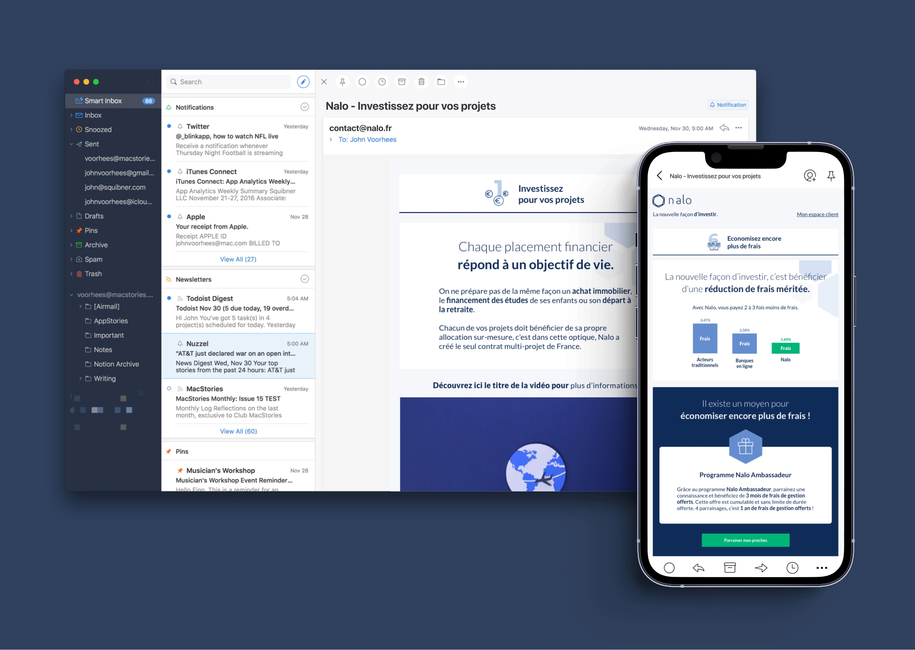 La clé : c’est la personnalisation. Le client ne doit pas sentir qu’il est un numéro au milieu d’une longue liste. Il doit immédiatement percevoir toute la qualité du service qui se cache derrière l’email. On crée donc des maquettes qui, tout en étant ultra simple d’utilisation pour Nalo, permettent de personnaliser chaque contenu en fonction du profil de chaque client.