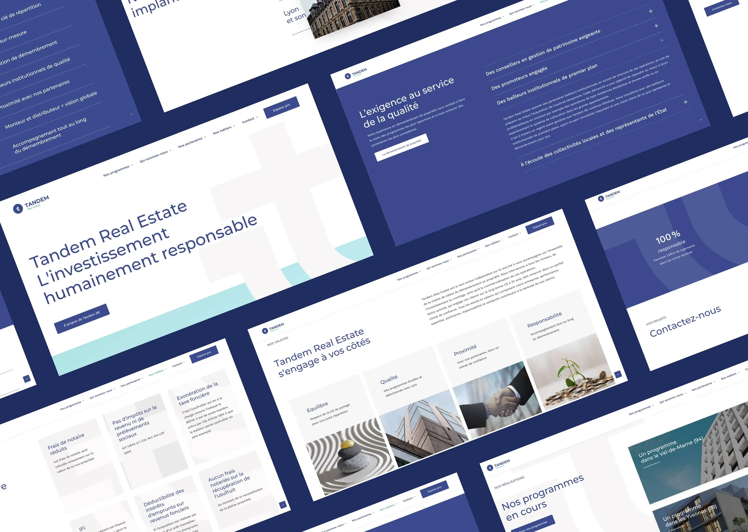 Ainsi, le choix de l’arborescence permet de rapidement découvrir la mission de Tandem Real Estate. Dès la page d’accueil, vous pouvez percevoir les programmes proposés. Le site vous permet de mettre des visages sur des acteurs de l’entreprise. Elle donne aussi de la visibilité à ses partenaires, comme gage de qualité porté par l'entreprise. Enfin, le site recense une section dédiée aux métiers dans lesquels Tandem RE s’est spécialisé : le démembrement de propriété au cœur de son expertise, mais aussi le portage de foncier et la co-promotion.