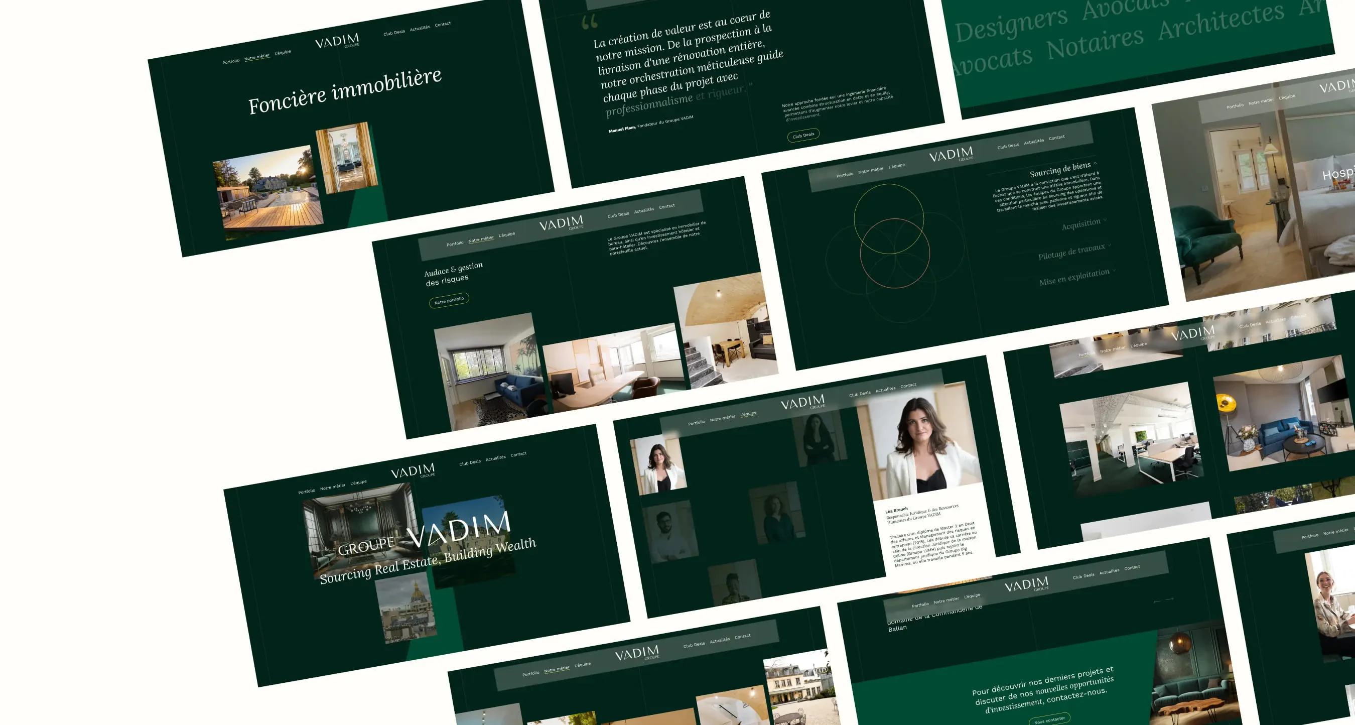 La refonte du site web a été l'opportunité de mettre en œuvre une structure et un mapping méticuleux, assurant la meilleure expérience utilisateur. Nous avons opté pour un design original, développant une structure qui incarne la sophistication et l'élégance, caractéristiques du Groupe VADIM.