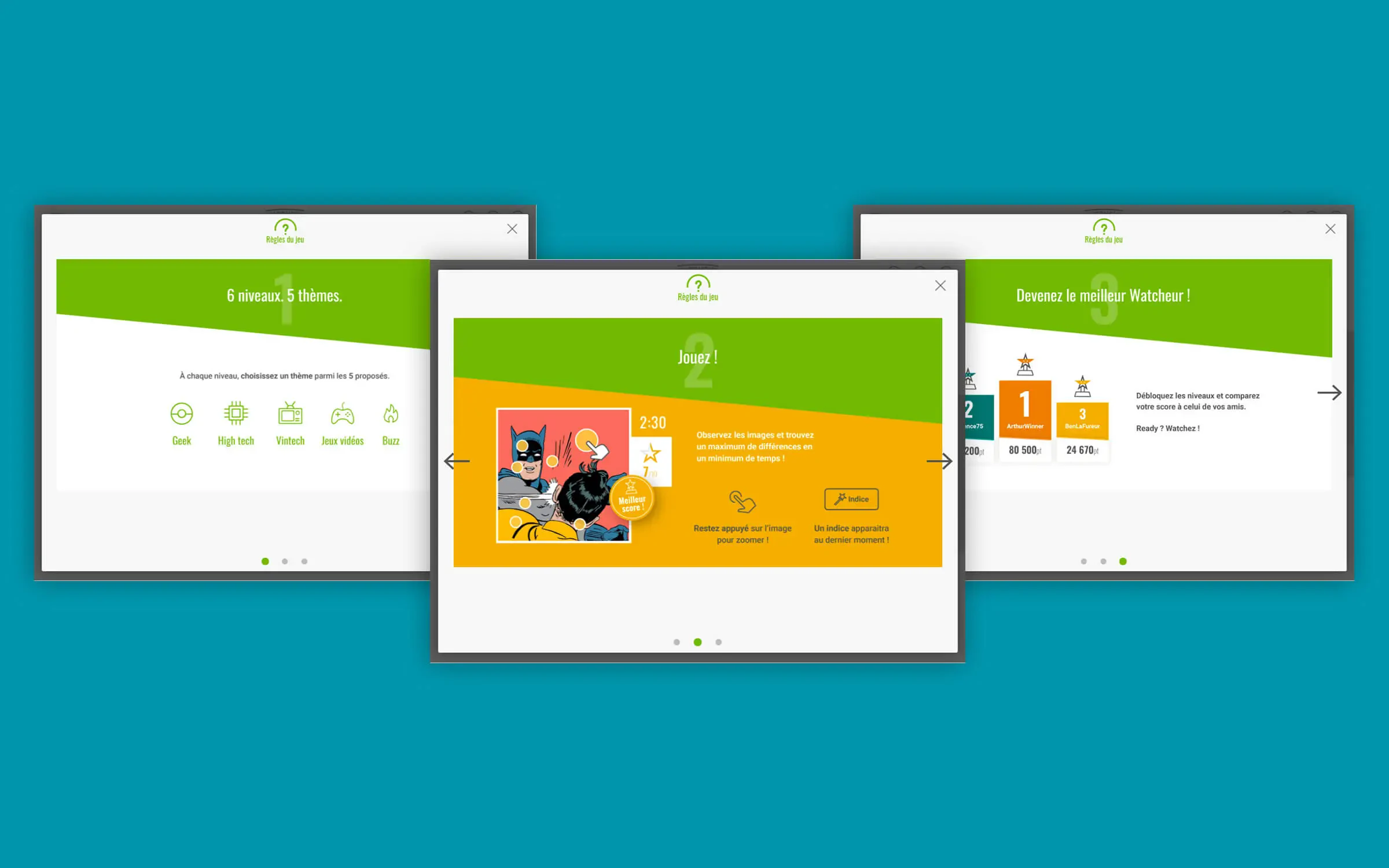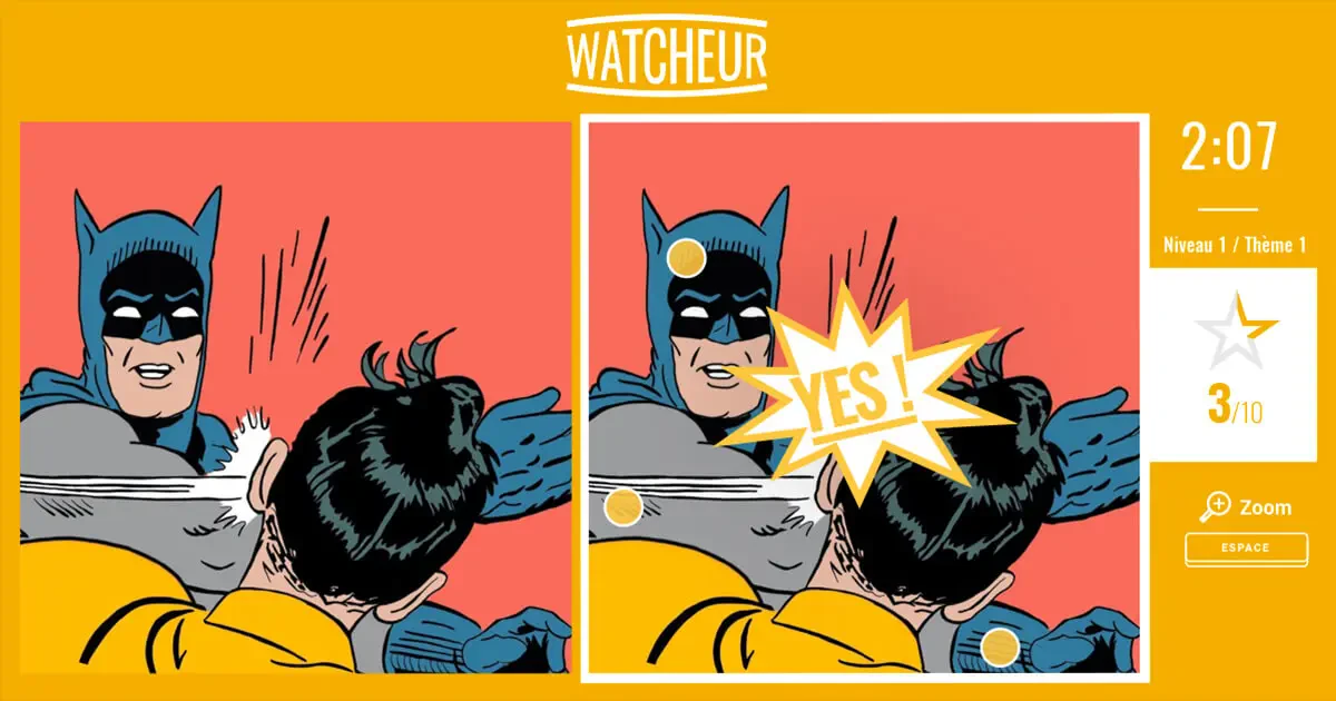 Afin de mettre en place de manière simple et accessible ce jeu, il est nécessaire de trouver un concept connu de tous (le jeu des différences) adaptable à l’univers du client. La partie la plus intense du projet est de concevoir tout le gameplay, les interfaces du jeu, l’ergonomie générale ainsi que penser la compatibilité avec les mobiles